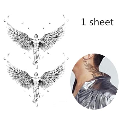 Art Faux Corps Noir Sexy Tatouage Aile D Ange Guerrier Grec Ancien Diable Conception De Tatouage Temporaire Autocollant Etanche Pour Bras Homme Femme