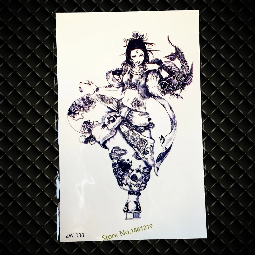 0 77 1 Pc Nouveau Design Tatouage Japonais Fille Gzw 038 Corps Art Bras Sexy Femmes Tatouage Carpe Etanche Tatouage Bras 3d Brassard Autocollants In