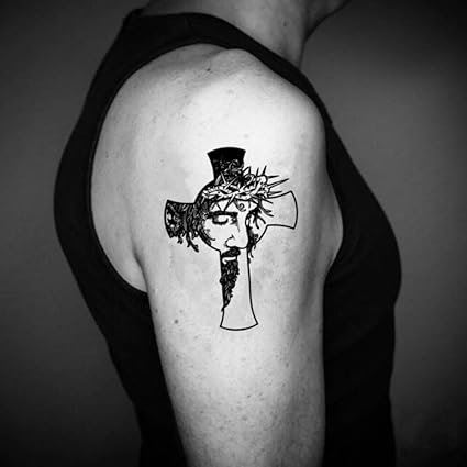 Amazon Com Jesus Cross Temporary Fake Tattoo Sticker Set
