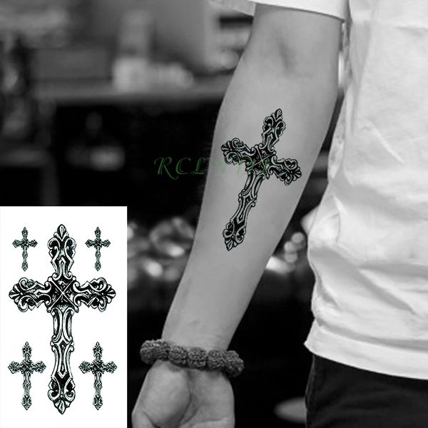 Acheter Autocollants De Tatouage Temporaires Impermeables Croix Totales Tribales Faux Tatouage Flash Tatouage Tatouage Cou Main Arriere Pied Pour