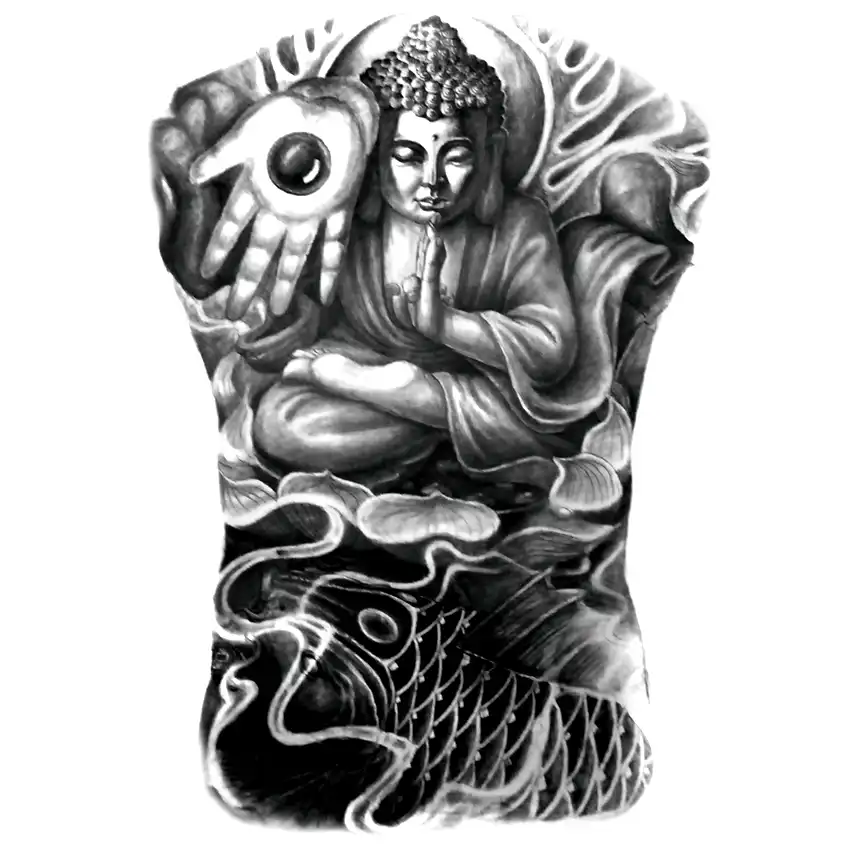 Temporary Full Arm Leg Tattoo Sticker Big Large Fake Buddha