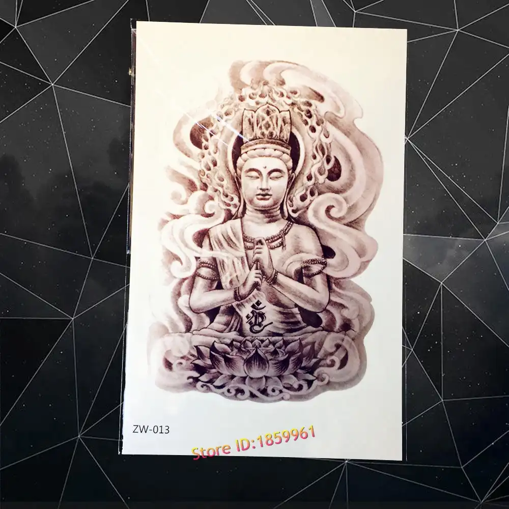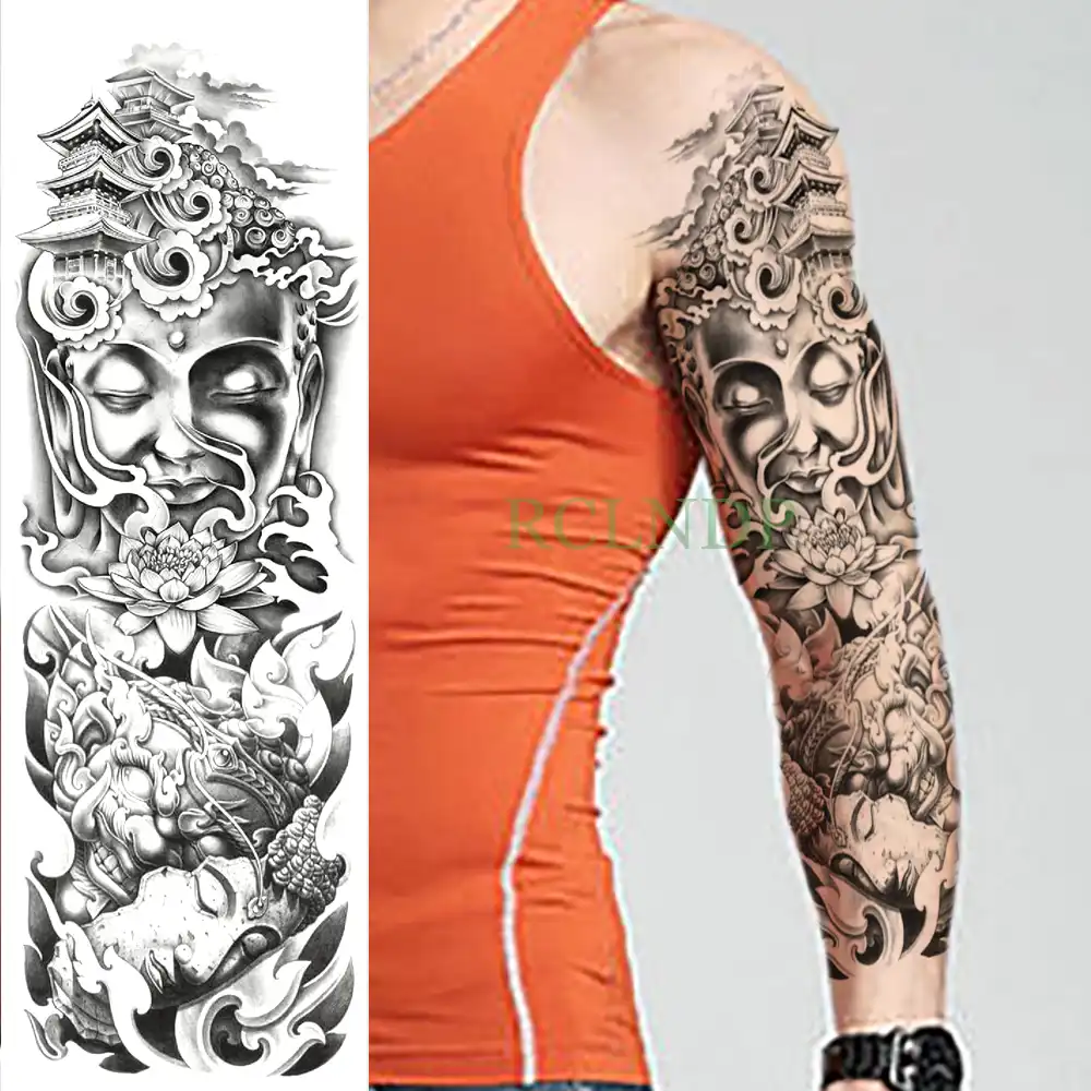 New Large Buddha Tattoo Arm Sleeve Waterproof Fake Tattoo Buddha Buddhism Lotus Flash Temporary Tattoo Sticker Body Paint Azw13