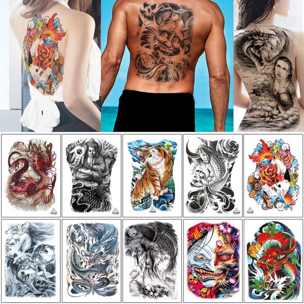 48 34cm Mb Big Large Full Back For Woman Man Temporary Tattoo Dragon Fish Devil Beauty Buddha Tiger Sticker Waterproof Body Chest Art Tattoo