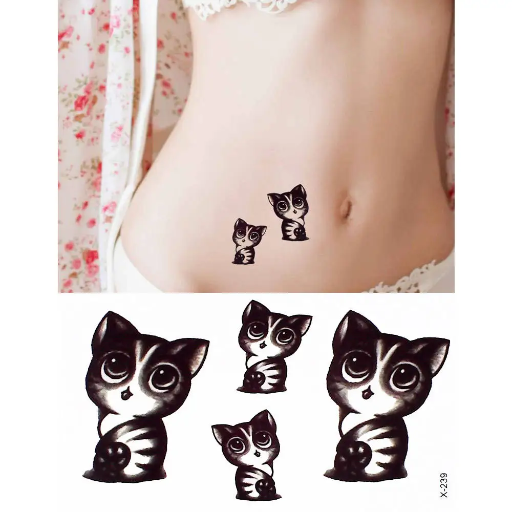 1 Feuille Temporaire Corps Tatouage Mignon Chat Elephant Amoureux Dessin Anime Decalcomanie Pour Femmes Enfants Poitrine Arriere Art Tatouage