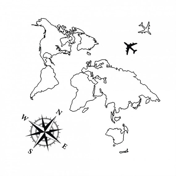 World Map Temporary Tattoo Airplane Flash Tattoo Wrist Tattoo For Travelers Wind Rose Compass Wanderlust Couple Tattoo Set