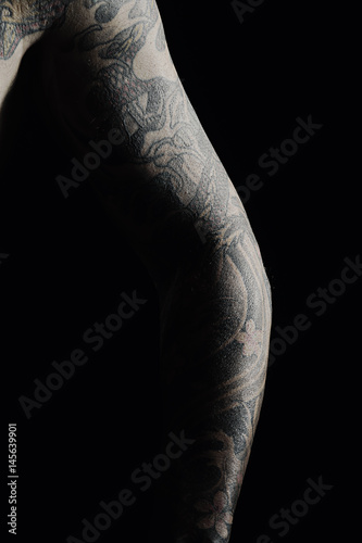 Homme Tatoue Avec Tatouage Japonais Yakuza Buy This Stock