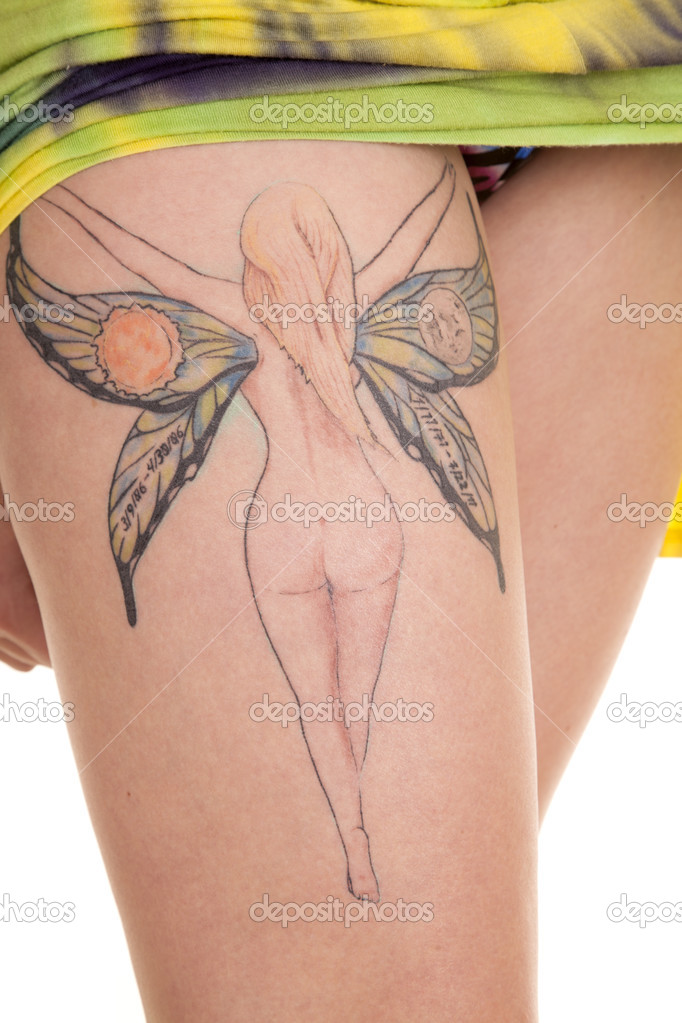 Femme Fee Tatouage Haut De La Jambe Photographie