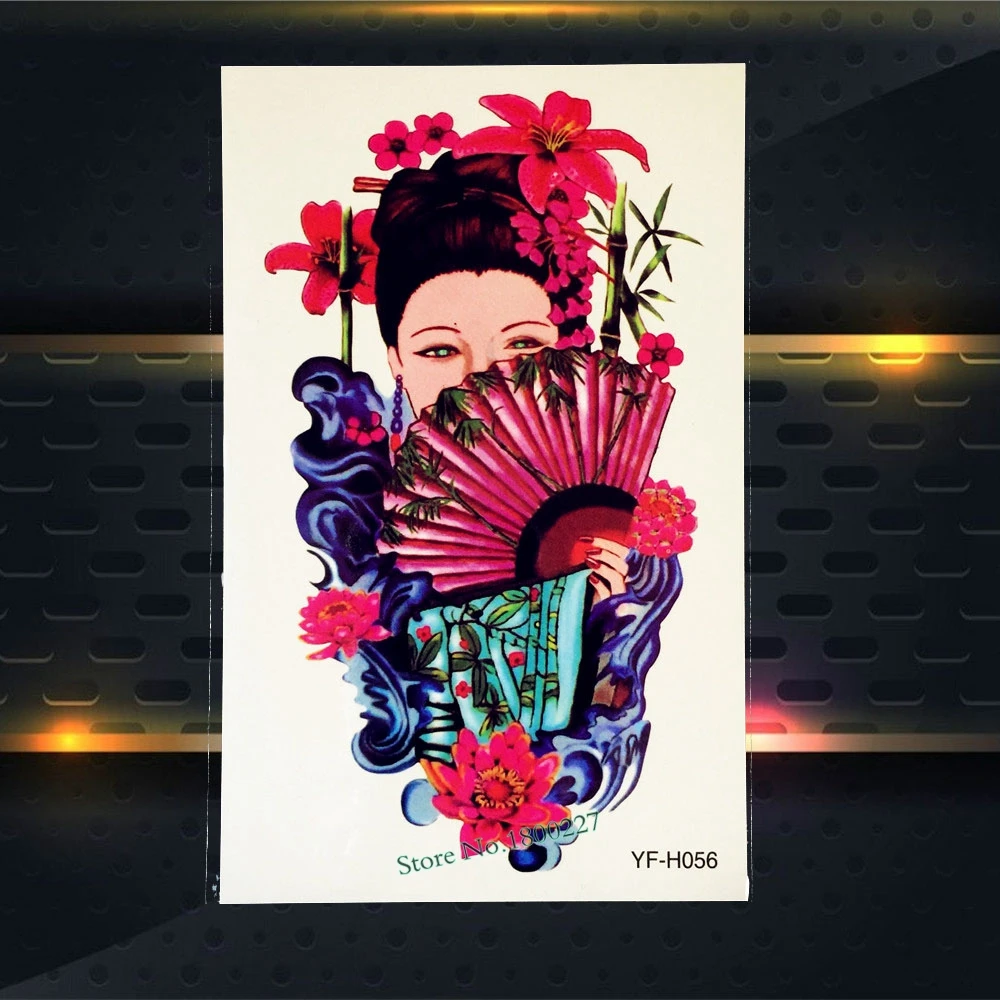 0 73 1 Pc Beaute Corps Art Peinture Faux Tatouage Japonais Geisha Fleur Bras Decalcomanies Temporaire Tatouage Pate Etanche Tatoo Manchon Pyfh56 In