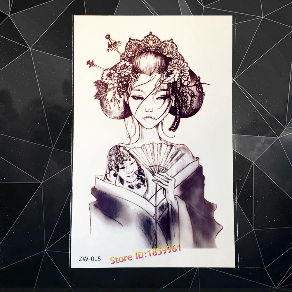 0 8 1 Pc Amovible Grand Flash Bras Manches Tatouage Japonais Anime Geisha Conception Femmes Corps Art Temporaire Etanche Tatouage Autocollant