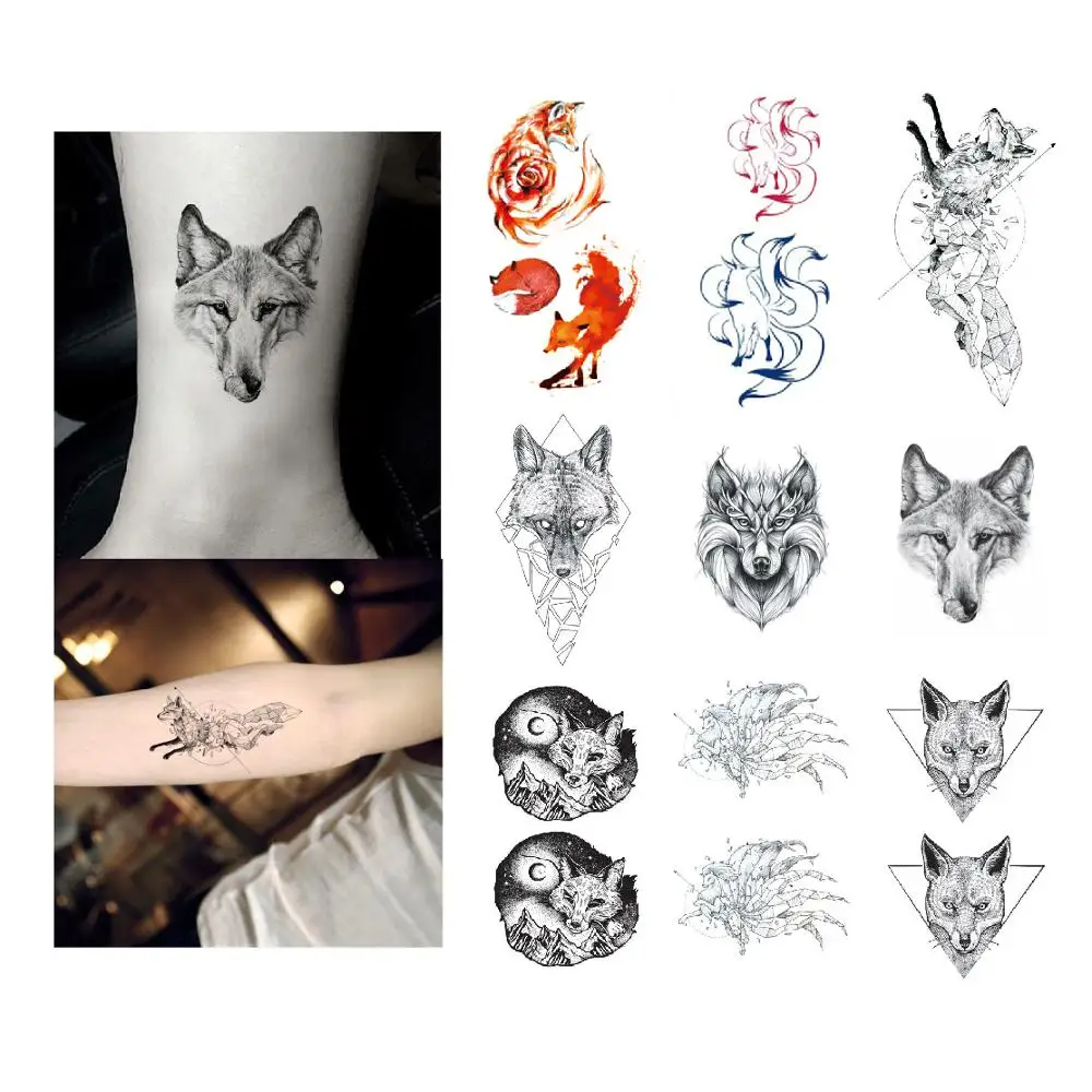 12 Pcs Lot Fox Temporary Tattoo Sticker For Women Men Fashion Body Art Adults Waterproof Hand Fake Tatoo 9 8x6cm