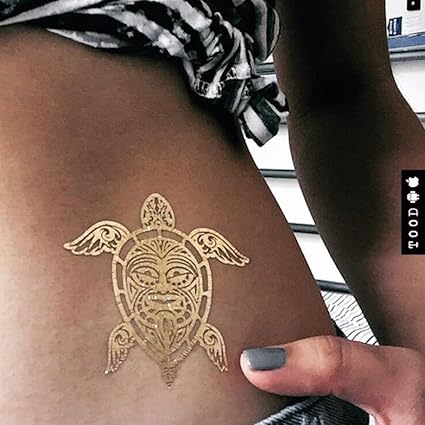 Amazon Com Metallic Gold Sea Turtle Temporary Fake Tattoo