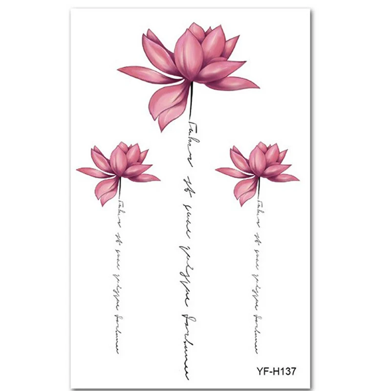 Details About Waterproof Pink Lotus Flower Tattoo Stickers Floral Pattern Temporary Body Art