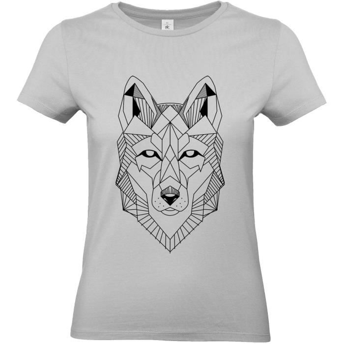 Kreamode T Shirt Femme Tattoo Geometrie Loup Tatouage