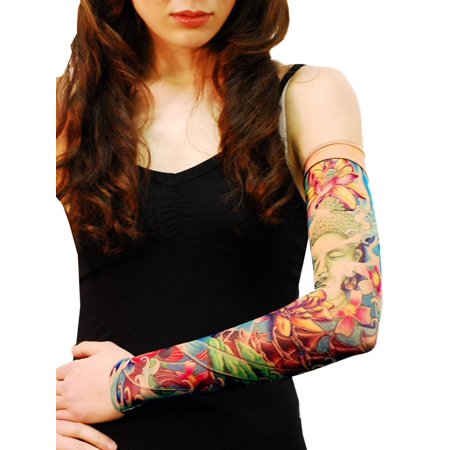 Wild Rose Unisex Single Tattoo Sleeve Mesh Arm Stocking Buddha Lotus Zen Prayer
