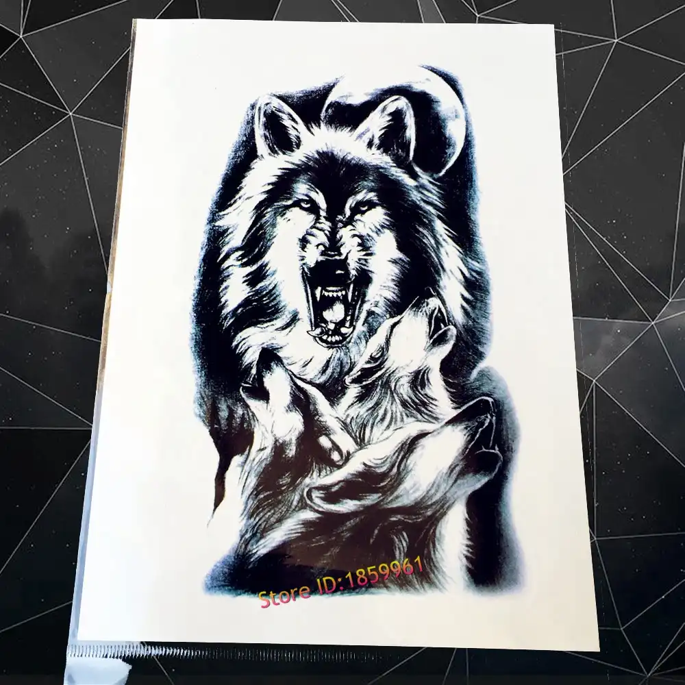 New Disposable Flash Temporary Tattoo Sticker Large Roaring Wolf Moon Design Waterproof Arm Tattoo Sleeve For Men Chest Aaq H850
