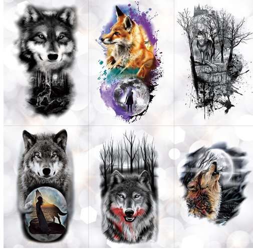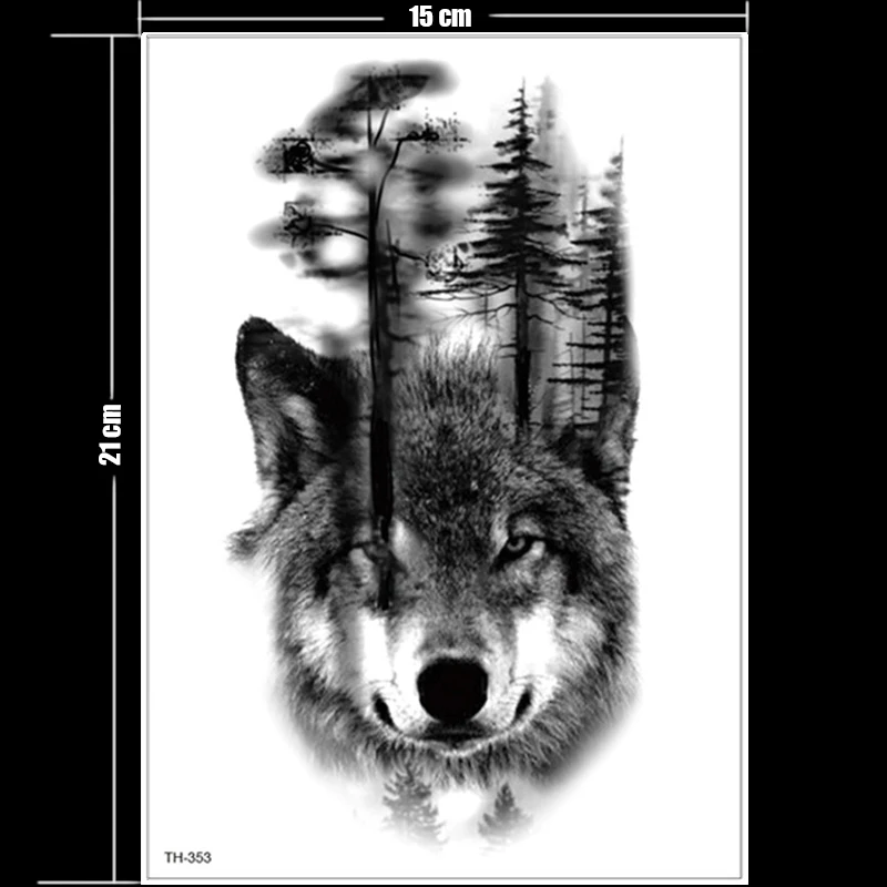 Fashion Tribal Wolf Moon Pine Tree Temporary Tatto Sticker Fox Girl Sexy Waterproof Tattoos Forest Body Art Arm Fake Tatoo