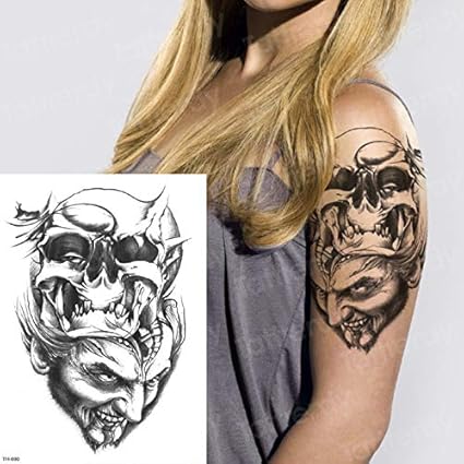 Details About Tattoo Homme Pistolet Impermeables Epaule Crane Bras Corps Tatouages Mode Faux