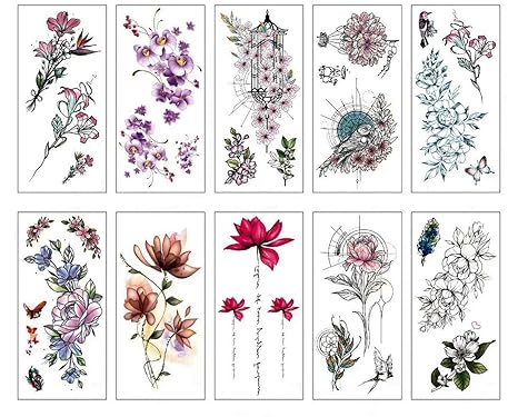 Ultnice 9 Feuilles Temporaire Fleur Tatouages Autocollants