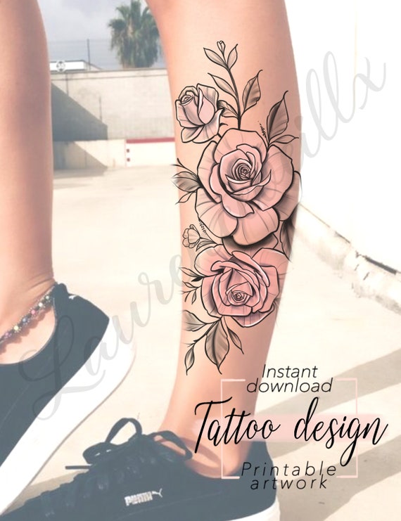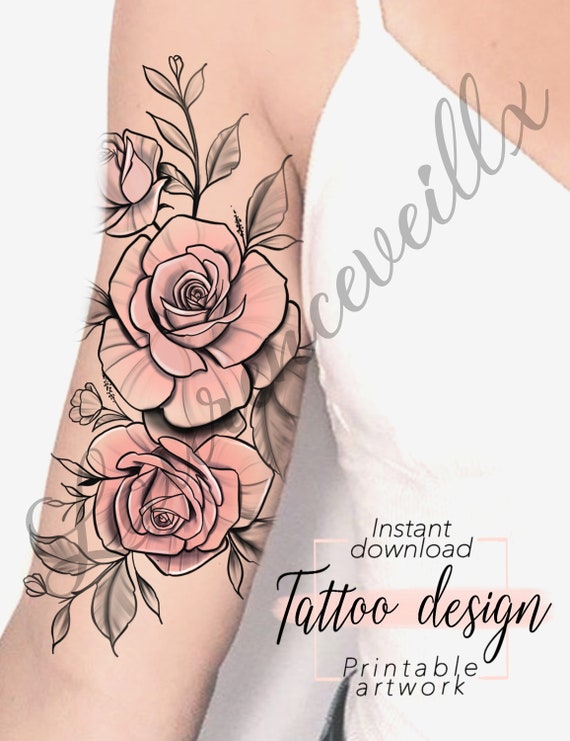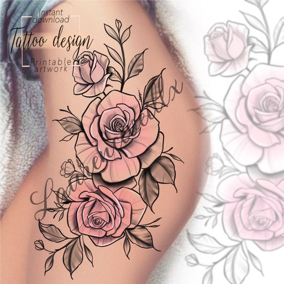 Tattoo Design Pink Roses Design Motif Floral Et Feminin Numerique A Imprimer Tattoo Pour Cuisse Bras Hanche Tatouage Unique Pour Femme