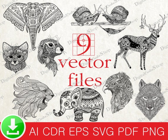 Animals Tattoo File Animals Prints Svg Animals Wall Art Ornamental Animals Svg Florals Animals Mandala Animals Digital Prints P003