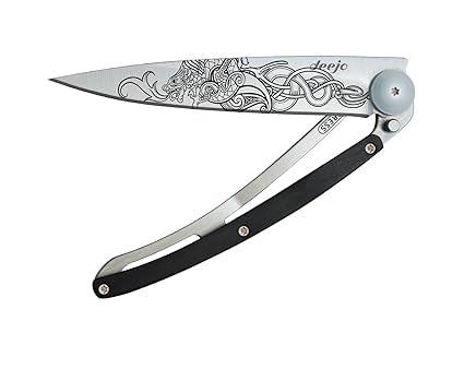 Deejo Pocket Knife Tattoo Viking Dragon Liner Lock Grenadilla Wood Handle