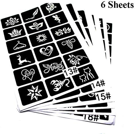 Xmasir Airbrush Glitter Tattoo Templates For Men Women Body Art Kids Temporary Tattoo Stencils Paper Kit Mixed 136 Sheets